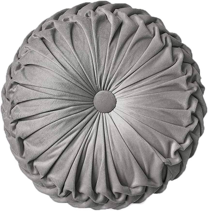 Round Throw Pillow Velvet Home Decoration Pleated Round Pillow Cushion for Couch Chair Bed Car Grey,One Size