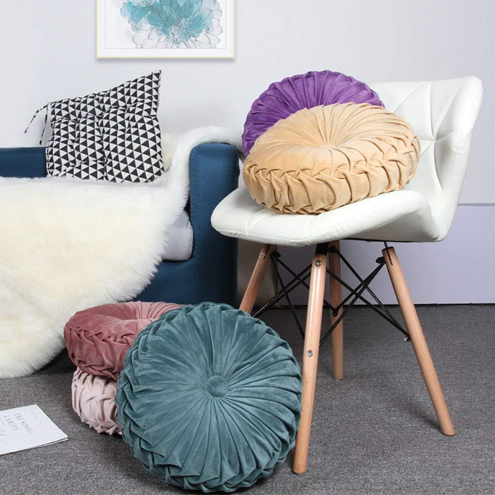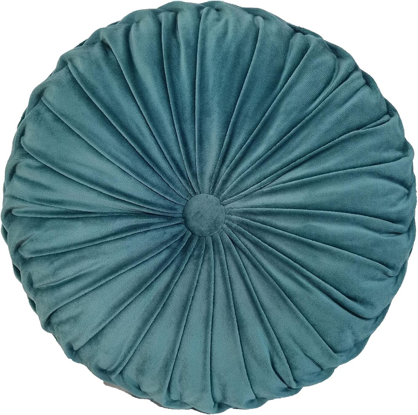 Round Throw Pillow Velvet Home Decoration Pleated Round Pillow Cushion for Couch Chair Bed Car Lake Blue