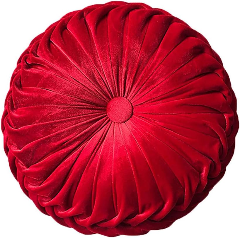 Round Throw Pillow Velvet Home Decoration Pleated Round Pillow Cushion for Couch Chair Bed Car Red