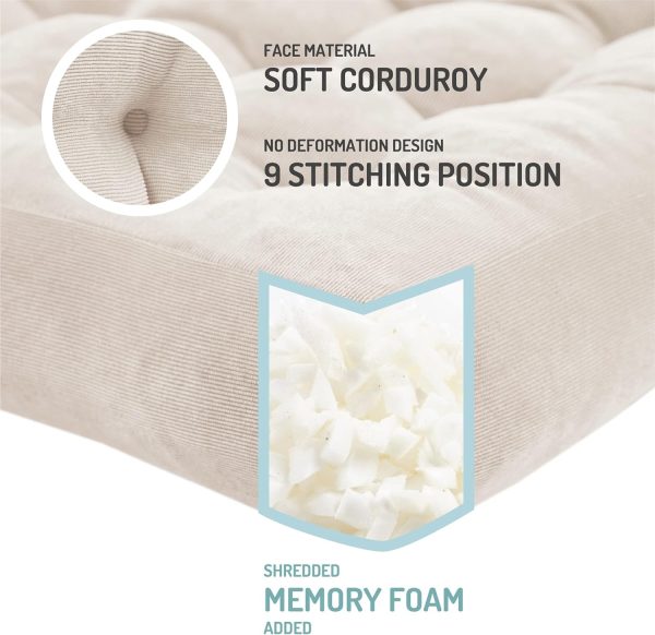 Floor Pillow Set of 2,Square Large Pillows Seating for Adults,Tufted Corduroy Floor Cushion for Balcony Outdoor Tatami Living Room,Beige,22×22 Inch