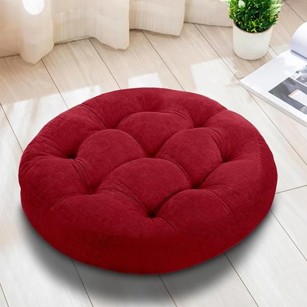 Floor Pillow,Large Floor Cushions,Round Floor Cushion Seating for Adults Kids,Tufted Thick Meditation Cushion for Yoga Living Room Tatami Fireplace Outdoor Floor,22x22x4 Inch,Claret