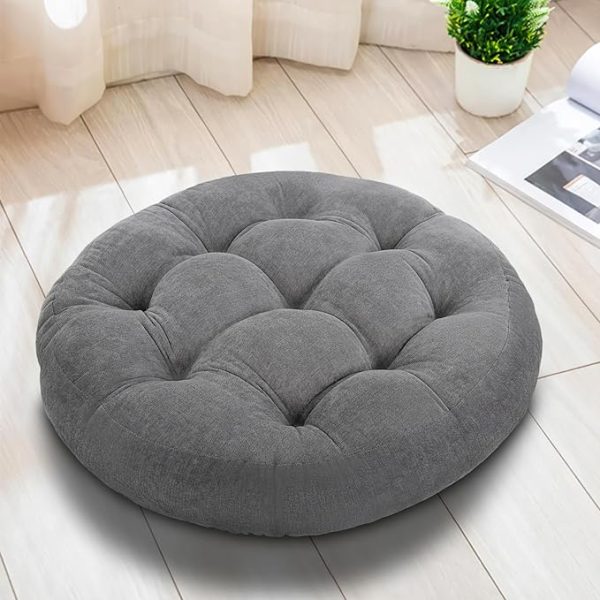 Floor Pillow,Large Floor Cushions,Round Floor Cushion Seating for Adults Kids,Tufted Thick Meditation Cushion for Yoga Living Room Tatami Fireplace Outdoor Floor,22x22x4 Inch,Gray