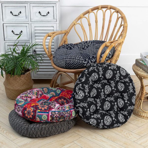 Floor Pillow,Dragon Pattern Pillow Round Seat Cushion Yoga Cushion India Seating Pad for Living Room Bedroom Balcony Garden Party Decoration,Black,22×22 Inch