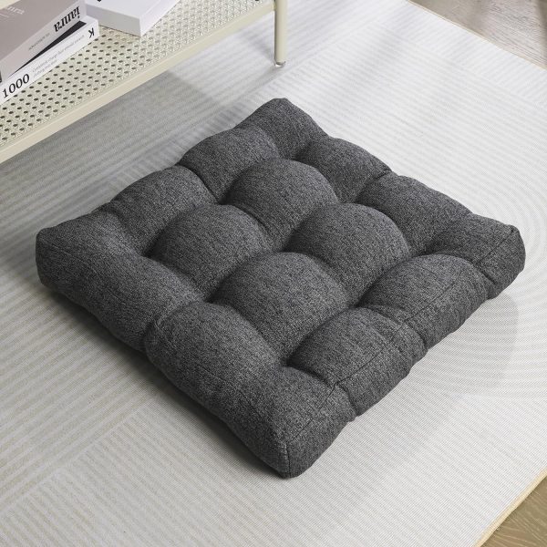 Floor Pillow,Square Floor Seating Pillow Cushion,Yoga Seat Kneeling Pillows Cushions Mat Pad,Solid Thick Tufted for Living Room,Balcony,Outdoor,21.7×21.7 Inch (Grey)