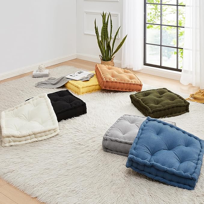 - Stylish Square DesignThe modern and practical square design easily matches various interior decoration styles. It adds a touch of sophistication to your space while acting as additional seating or a decorative element.We offer a wide selection of colors and patterns to ensure you can find the floor cushions that best suit your home decor.