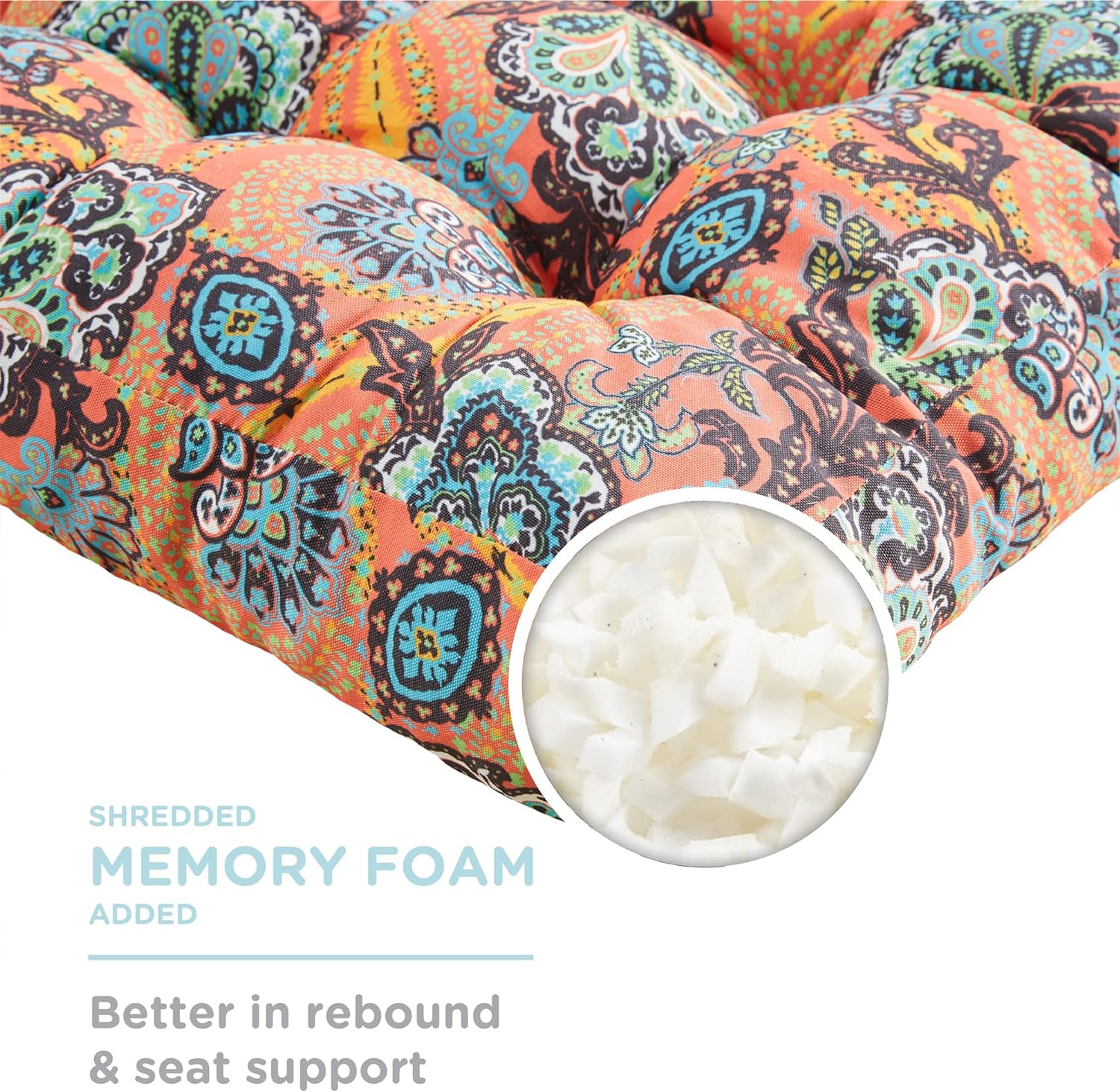 - BOHEMIAN CUSHIONS: Vivid colors of the floral styled pattern coupled with tufted design brings an extra layer of depth to this beautiful contrast. Place it in the living room,kids playroom,dorm,fireplace area,dormer window,or any desired space! The additional pop to your home decor invites an exciting vibe of both fun and relaxation.