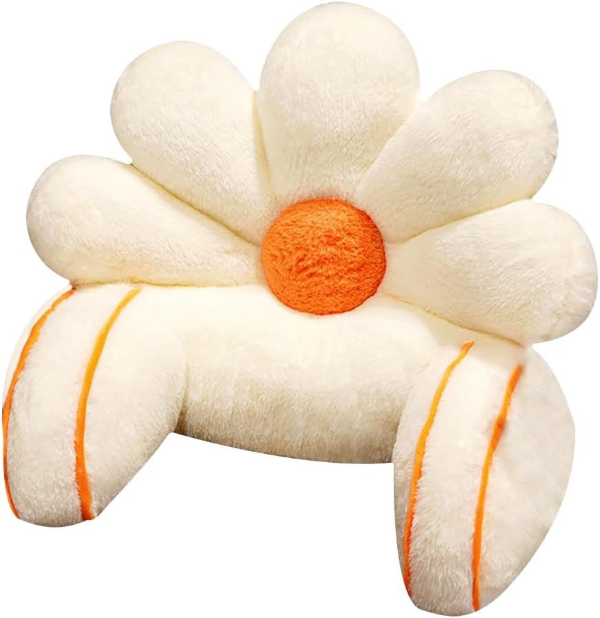 Reading Bed Rest Pillow with Arm Support,Cute Flower Shaped Faux Fur Backrest Support Reading Pillow for Sitting up in Bed,Washable Cover (White,Large)